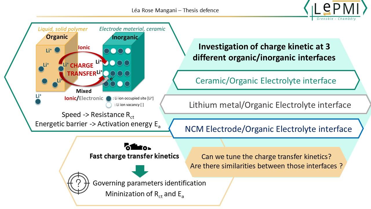 Generally, charge transfer mechanism (either ion and/or electrons) and the interfacial reactivity (electrode/electrolyte, polymer/ceramic) are of major concern in the development of the next generation of battery. Their understanding is essential for the modeling and the design of advanced battery.